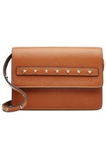 Designed with a dual carrying option, RED Valentino's convertible clutch features a textured pebbled finish and star studding * Matte white gold leather, flap with star studded clutch strap and hidden magnetic snap closure, belted shoulder strap with star studding, inside zippered back wall pocket * Slender, rectangular shape, can be carried as a clutch or shoulder bag Leather Sizes: One Size